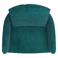 - Barrel-style accent chair with soft velvet upholstery