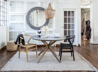 Inspired by the Hans J Wegner Wishbone Chair from 1950, our Frida Dining Chair is a new take on classic mid-mod design. From the fluid lines to the sturdy woven seat and airy design, Frida looks gorgeous around the dining table, in the office or at a cafe.
