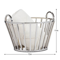 Organize your space in style with this Divide Stainless Steel 15" Diameter Handle Basket. Crafted from stainless steel, this beautiful basket will lend a timeless chicness to any shelf or countertop, while providing a practical storage solution for throws, towels, and other small items. Sophisticated and exclusive, this basket is the perfect addition to your home.