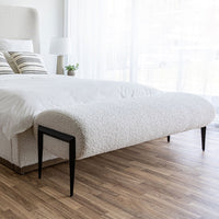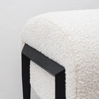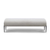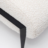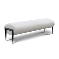 This modern bench just might be the perfect piece of furniture. Upholstered in a stylish off-white boucle fabric and featuring black metal legs, this bench adds a stylish finishing touch to your space. Dreamy at the end of a bed, dramatic in an entryway, and stunning as a dining bench, Fisher gives you endless possibilities.
