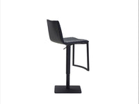 The Crow stool swivels on a sturdy steel post and is custom adjustable in height on a German rated TVAC piston mechanism. The upholstery is a breathable and easily cleaned leatherette. The seat construction is made from high quality foam to ensure comfort and longevity. The pedestal of this stool is powder coated in a modern matte white finish allowing it to coordinate with all kinds of kitchen finishes and stone counters.