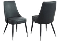This beautiful extension table is sure to start a conversation or two. The geometric build on the pedestal base continues up through the thick beveled table top. A handy pull-apart function allows for easy self-storage of the butterfly leaf, making this table as versatile as it is stylish. This oversized mid-century dining chair will bring warmth and comfort to any casual or formal dining space. The plush cushions are finished with piping details on the front and back, while the black metal legs are topped (bottomed?) with a chrome accent. The vintage-look faux leather upholstery gives off a rustic vibe while the chrome adds a contemporary touch.
