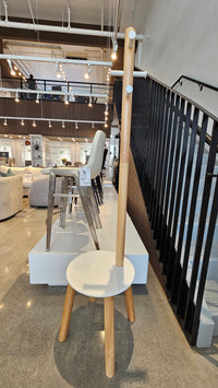 The Multi-Functional Coat Rack with Integrated Stool is a masterclass in Scandinavian-inspired minimalism, offering a 2-in-1 solution that balances architectural form with essential utility. Crafted from a harmonious blend of natural wood and crisp white metal, this piece serves as a curated anchor for the modern entryway or master suite. Its vertical silhouette is punctuated by six precision-placed hooks, while the integrated pedestal stool provides a sophisticated surface for footwear or decorative accents.