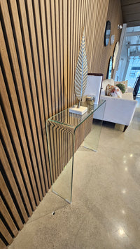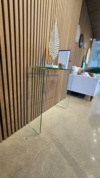 Curvo Narrow Glass Console Table – Waterfall Design (Floor Model)