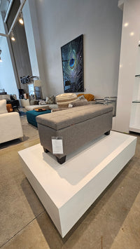 Grey Storage Ottoman Bench | Tufted Top with Hidden Storage (Floor Model)