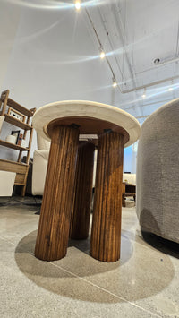 Jem Accent Table | Walnut Mango Wood & White Marble Top (Floor Model)