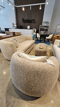 Palermo Swivel Accent Chair – Midi Almond Bouclé (Floor Model)