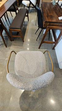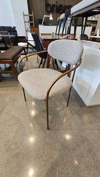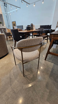 The Oasis Arm Dining Chair is a masterclass in coastal modernism, offering a sophisticated interplay between structured metalwork and soft, inviting textiles. Characterized by its gracefully arced silhouette, the chair features a sleek antique bronze frame that provides a confident, architectural foundation. The rounded backrest and generously proportioned seat are upholstered in a premium polyester-acrylic blend, curated for both its tactile depth and effortless maintenance.