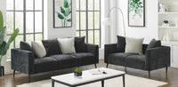 Stocked in Cio Onyx. Toss Pillow (not included): Honor Pepper. Black Metal finish.