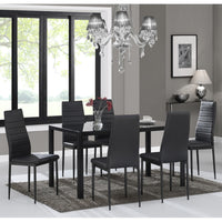 Add a dash of 21st Century dynamism to your living space with this poised, ultra-modern collection. This dining table features a sleek black 8mm tempered glass tabletop for wipe-clean durability along with effortless style. Complement with matching chairs, or mix it up with chrome or a bright colours for an eclectic look. Seats six comfortably.