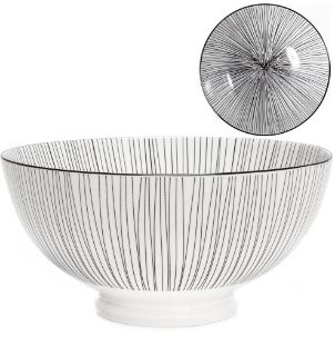 Kiri Porcelain 8" Large Bowl - Grey W/ Blue Trim