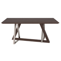 This contemporary dining table makes its presence known with appealing finishes, interesting stainless steel components, and a sleek geometric design. Fashioned out of both wood and metal, the compelling and contrasting composition of this piece makes a striking statement. Composed of wood, fabric, and metal, this chair is also a show stopper. With its curved wood seat frame, seat cushion covered in fabric upholstery, and metal legs emblazoned with a walnut finish through the process of heat transferring, this chair unifies a multitude of elements all into one perfectly composed design. The comfortable seat allows for hours of conversation around the dinner table, while the slim, tapered look of the metal legs adds a splash of sex appeal.