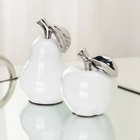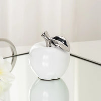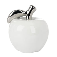 Orchard White Ceramic Silver Tipped Apple Decor Sculpture