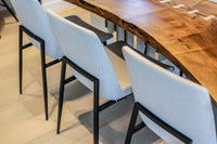 Sleek and sophisticated and built to last, our Thames dining chair turns a mere table into the perfect spot to sit and linger with friends and family. Each open chair seat is richly upholstered and placed on a matte black metal frame.