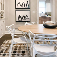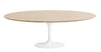 The Trumpet Oval Wooden Dining Table is made of an Ash Wood Veneer Finished Dining Top and White Coated Aluminum Base. Seats up to 6 people comfortably.