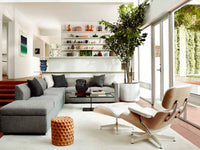 The Charles Lounge Chair and ottoman are furnishings made of molded Walnut Veneer and leather, inspired by the Eames partners for the Herman Miller Furniture Company in 1956. It was the first chair that the Eameses designed for a high-end market and today they remain a popular staple.