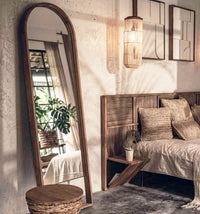 The elegant Coco wall mirror is a classical piece that doesn’t easily go out of style. The oval top shaped mirror frame is made of reclaimed teak, shaped and curved by hand around the actual mirror. With its timeless, minimalistic design, the full-sized mirror is easy to mix into many interior design styles.