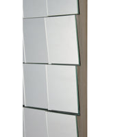 The Gomera Wall Mirror features a multifaceted surface with sleek polished edges, complete with an antique brushed silver finish.