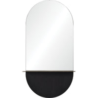 The Lisdarra Wall Mirror features a timeless design, complimented by a unique, black wood veneer shelf.