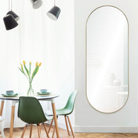 The Marius Wall Mirror is a simplistic, yet classy mirror with a gold leaf accent. This full-length mirror will add a touch of elegance to any room in your home.