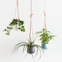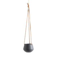 Bring a modern and stylish touch to your favorite space with this beautiful ceramic hanging planter. Featuring a 5" matte grey ceramic pot and three leather cords, this piece brings a timeless Scandinavian simplicity that will lend an air of style and sophistication to any room. Use it to display pre-potted herbs in the kitchen, succulents or air plants in the bathroom, or lush ferns in the living room and experience the decorative and healthful benefits of indoor greenery. Create a unique look and feel in your home with the Ashbury Leather Hanging Planter.