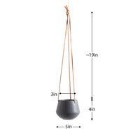 Ashbury Leather Hanging 5" Diameter Grey Ceramic Drop Pot Planter