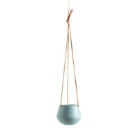 Ashbury Leather Hanging 5" Diameter Teal Ceramic Drop Pot Planter