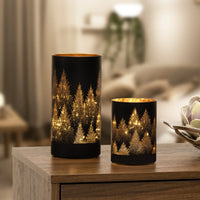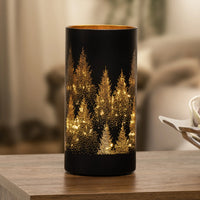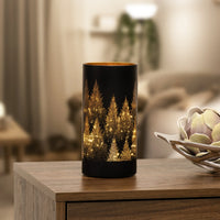 This LED hurricane lamp adds a touch of imagery and sophistication to your home. Its black glass surface is exquisitely adorned with a silhouette tree design, creating an elegant atmosphere that will bring a serene, inviting feel to your living space. The micro LED lights within further enhance the atmosphere, radiating a golden glow that illuminates your home with warmth and style.
