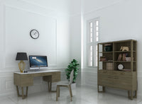 Featuring a Marble table top, this Solid Acacia Wooden Desk is both glamorous and luxurious. Two cabinet doors and one drawer provide ample storage for any office supplies or filing paperwork.
