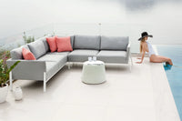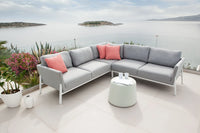 Discover the perfect outdoor oasis with the UV and Water/Stain Resistant Malibu Outdoor Sectional! Lightweight aluminum frame is covered in quick dry foam and Sunbrella fabric with a powder coated white finish for superior weather-resistance. Enjoy your outdoor space all season long with the lasting quality and comfort of the Malibu Sectional. Protect your investment with the available cover!