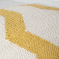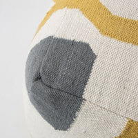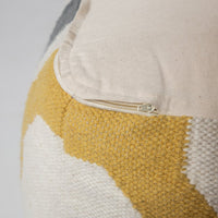 Designed from our love of Mediterranean-inspired design, this pouf is stylish, comfortable and oh-so-versatile. Featuring a dazzling geometric pattern in cream, slate-grey and mustard, this handmade wool pouf adds cozy comfort and a pop of subtle colour to a space. This pouf is perfect for adding a little extra seating, as a footrest after a long day or while you binge-watch your favourite show or pop a tray on top to create a coffee table in an instant.
