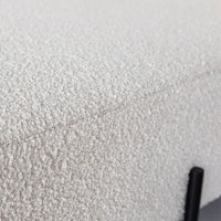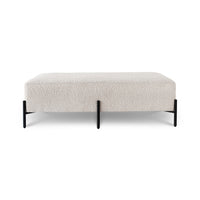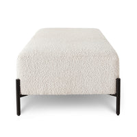 Minimal, elegant and versatile, our Elk Ottoman is stunning in off-white boucle. Modern and sophisticated, Elk is everything you want in a room. At 54” wide and 17” high, it’s perfect as a coffee table, as a bench for extra seating and looks marvelous at the foot of a bed or under a window as a cozy nook. This generously padded ottoman sits on 6 slender matte black metal legs.