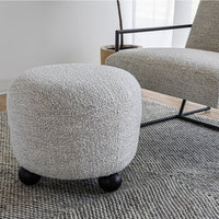 Prepare to be captivated by the elegant allure of our new arrival, the enchanting Francis Ottoman. Cloaked in a delightful Natural Howlite Performance Fabric, this circular ottoman stands tall at an impressive 17 inches, gracefully perched upon four spherical ball feet. Its design transcends time, harmoniously blending with any decor, courtesy of its sophisticated woven neutral fabric. Meticulously crafted for unparalleled comfort, this upholstered masterpiece features a plush padded top, inviting you to indulge in a blissful respite for your weary feet or embrace its irresistible charm as a stylish platform for books, crafts, and more. The lightweight construction empowers you to effortlessly transport it from one room to another, following your every whim and desire. Prepare to embrace luxury at its finest.