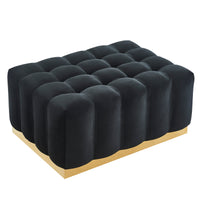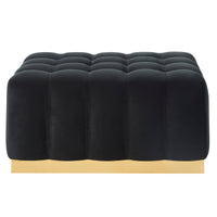 - Luxurious black velvet upholstery with plush square tufting