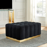 A pop of colour makes a truly bold statement with this vividly lush and vibrant ottoman. Outfitted in an eye catching colour, this accent seat takes centre stage with its entrancing details. Lined in soft upholstery that will make it feel like you're sitting on a cloud, this piece is adaptable no matter the situation. Perfect for additional seating, extra table space, or even just to put your feet up after a long hard day. Its sturdy stainless base, finished in a brushed gold, will make it last as a centrepiece of your home. Finding the perfect match between glamour and practicality, this ottoman will ensure your comfort never goes out of style.