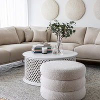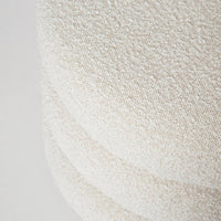 We are in love with the sculptural profile of our Spring Ottoman. The stacked cushions give this ottoman added curves and modern styling for our living room, bedroom, entryway or office. Versatile and easy to move from one spot to another, Fiel is perfect for extra seating, as a perch for your tootsies, or as a side table with gorgeous little added for extra measure. Upholstered in warm and trending off-white bouclé