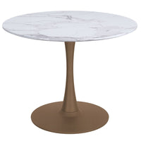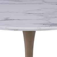 Acer 40" Round Dining Table in White Faux Marble and Aged Gold