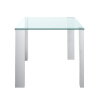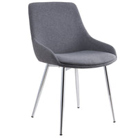 The clean lines of contemporary design are perfectly defined with this dining table. The rectangular posts with their chrome finish and the clear glass table top come together seamlessly to create a beautiful table with a light airy feel. Great for open concept areas where you don't want to close off the space, or even for tighter spaces where you want to create a more open feel. The sloped back of this mid-century modern style chair adds a level of sophistication and a dash of excitement to any room. Upholstered in a luxurious velvet, the chrome-finished legs of this piece further enhance its overall allure while the sturdy frame ensures comfortable seating for guests.