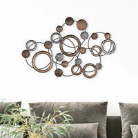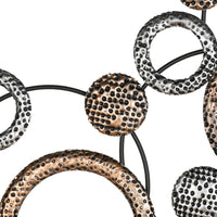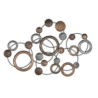 Give your space an instant update with this industrial-inspired metal wall decor. The orbiting rings feature an array of textured metallic colors for a dramatic appeal that is sure to make a statement.
