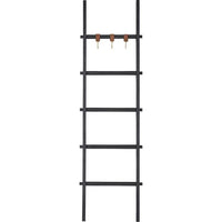 The ultimate comfort accessory finds its organizational match in this decorative ladder. Fit for the mid-century modern or industrial interior, its black painted mango wood build, cognac-toned leather straps and antique brass-plated aluminum hooks become a trifecta of style within the space. Whether holding throw blankets or standing solitary, its grand 72-inch-tall frame, creates a lasting impression at every pass.