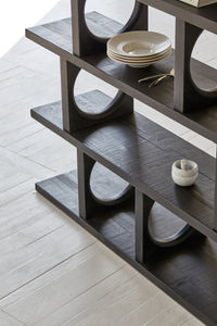 Introducing the Pedro Bookcase, a contemporary storage solution that seamlessly melds premium MDF and black pine materials to form an exquisite statement piece. Its sleek and refined composition exudes an aura of sophistication and provides a practical means of organizing your belongings. Unobtrusive and ageless in design, the Pedro Bookcase embodies a tasteful and refined touch that elevates the decor of any living space.