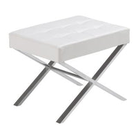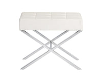 A stylish bench suitable for living, lounge, foyer and bedroom spaces. Stocked in high shine polished steel with a tufted white faux leather top.