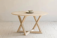 Featuring a hexagonal/geometric, the Avicii Dining Table comes in a washed light oak finish and seats up to four people.