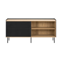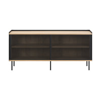 Elegance and durability come together in the Ace Sideboard Natural: constructed from solid oak with luxe metallic accents, this sideboard adds a sense of sophistication and strength to any room. With two easy-access sliding doors, adjustable shelves, and wide storage options, the Ace Sideboard Natural provides ample space for all your needs while its regular rectangles and right angles add a timeless touch.