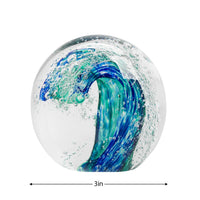 Blue Wave Glass Ball 3" Paperweight Decor
