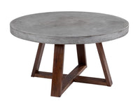 A mix of industrial and rustic design, this coffee table features a substantial concrete round top and is finished with a light espresso wood base. Crafted from a natural concrete mix, each piece will look different, with variations of hues that will enhance over time.