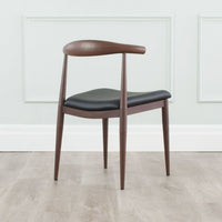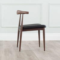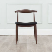 The Elbow chair is a wonderful side chair for use in any room. Great for extra seating. Your family and friends will feel cozy in this black bicast leather seat on solid ash frame with walnut stain. It's a wonderful chair with a classic design.