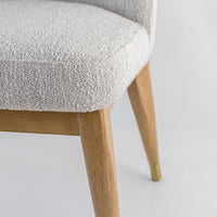 Our bouclé Fawcett Dining Chair brings contemporary mid-mod-inspired design to dining rooms and kitchens. Sitting on top of slender salted oak wooden legs, the comfortable wide padded seat and back are upholstered in a durable bouclé fabric. Fawcett is ideal for creating comfy dining spaces or as an extra chair in bedrooms, offices and entryways.