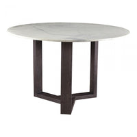 A classic staple that will transcend every dining situation. The Jinxx Dining Table evokes modern simplicity with its geometric base made from solid acacia wood. The satwaria marble top takes on and classic marble vein that will vary from table to table.