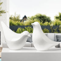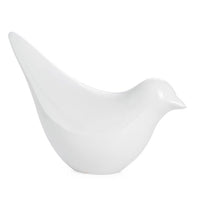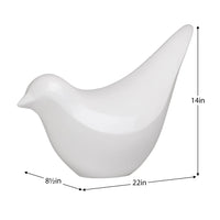 An oversized polystone bird is finished with a shiny white lacquer making it a great statement piece inside or out.